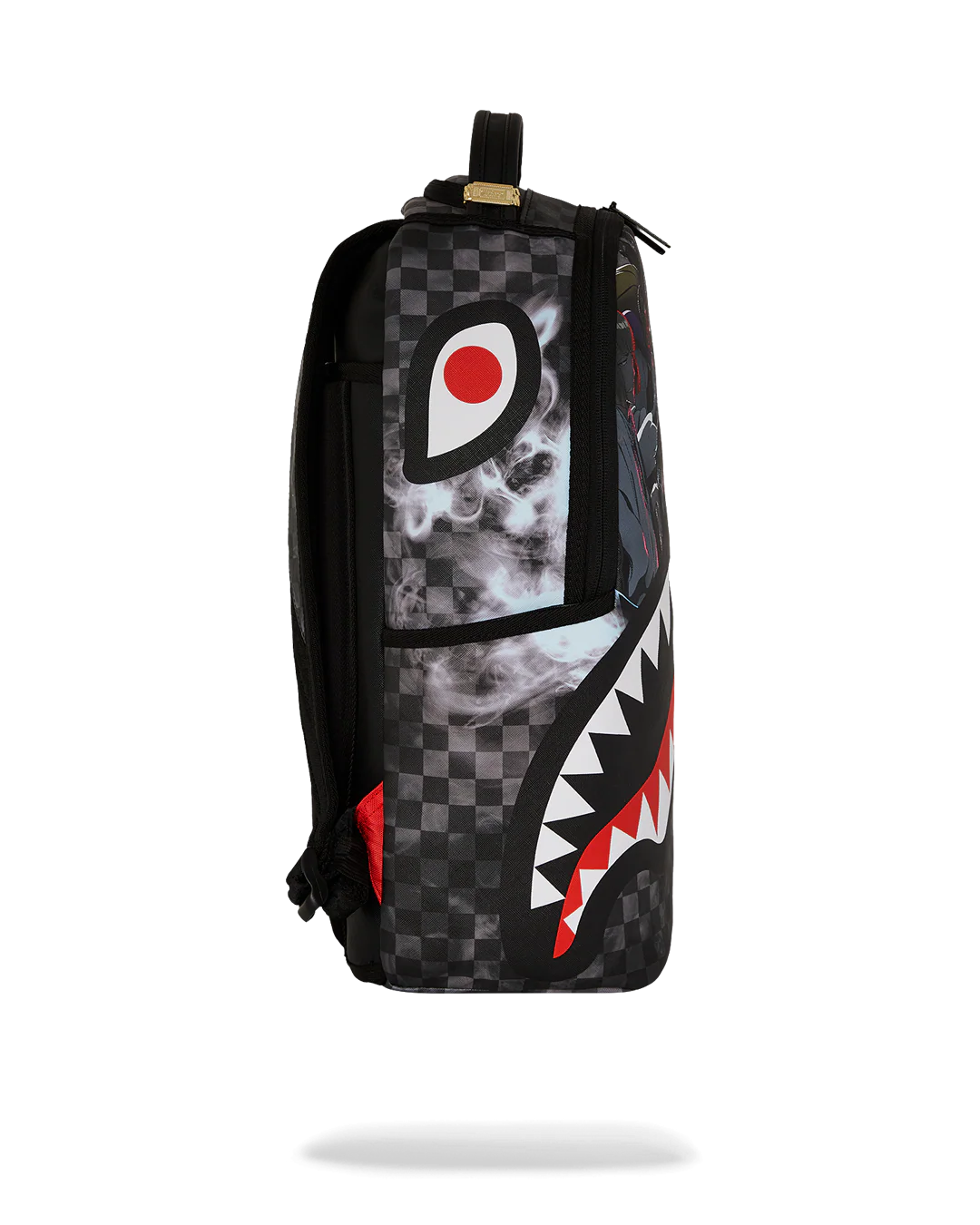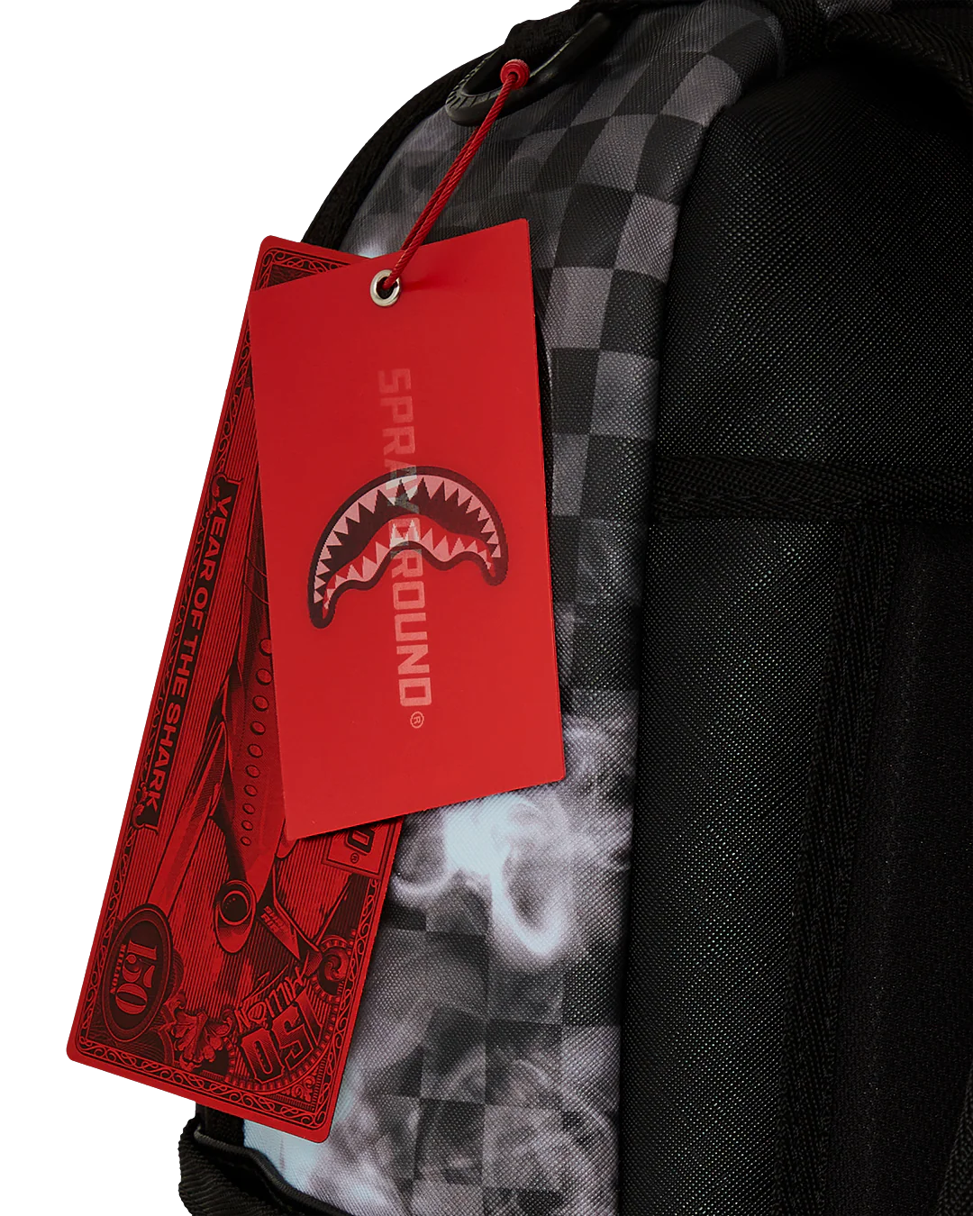 Dimensions: 18" x 6" x 11.5" • Front zipper pocket • Side pockets • Zippered Stash pocket • Separate velour sunglass compartment • Ergonomic mesh back padding • Adjustable Straps for custom sizing • Gold zippers with metal hardware • Metal "Sprayground Authentic" badge • Slide through back sleeve connects to carry-on luggage to free your hands