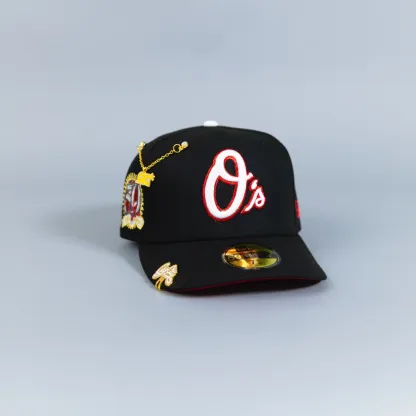 NEW ERA EXCLUSIVE 59FIFTY BLACK BALTIMORE ORIOLES W/ 50TH ANNIVERSARY PATCH