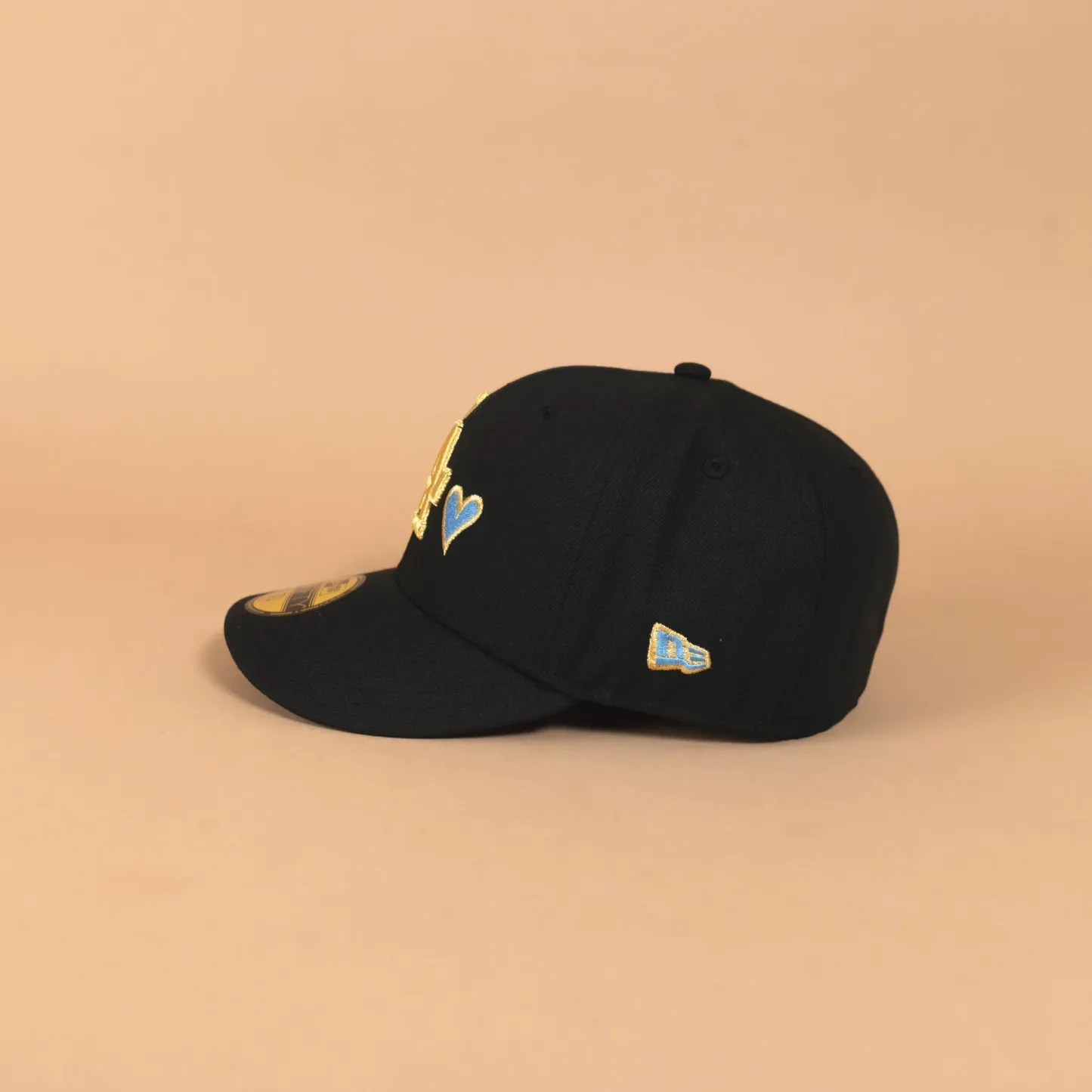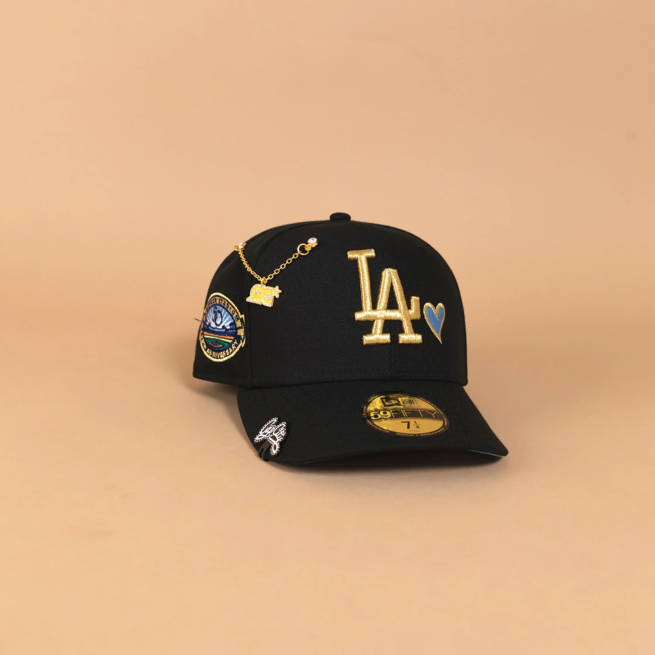 NEW ERA EXCLUSIVE 59FIFTY BLACK LOS ANGELES DODGERS W/ ICY HEART + 50TH ANNIVERSARY SIDE PATCH