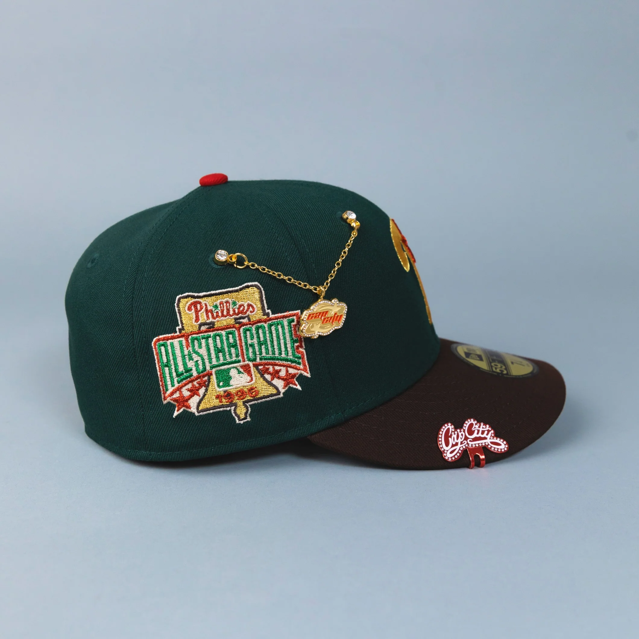 NEW ERA EXCLUSIVE 59FIFTY EMERALD GREEN/ BROWN PHILADELPHIA PHILLIES W/ 1996 ALL STAR GAME PATCH