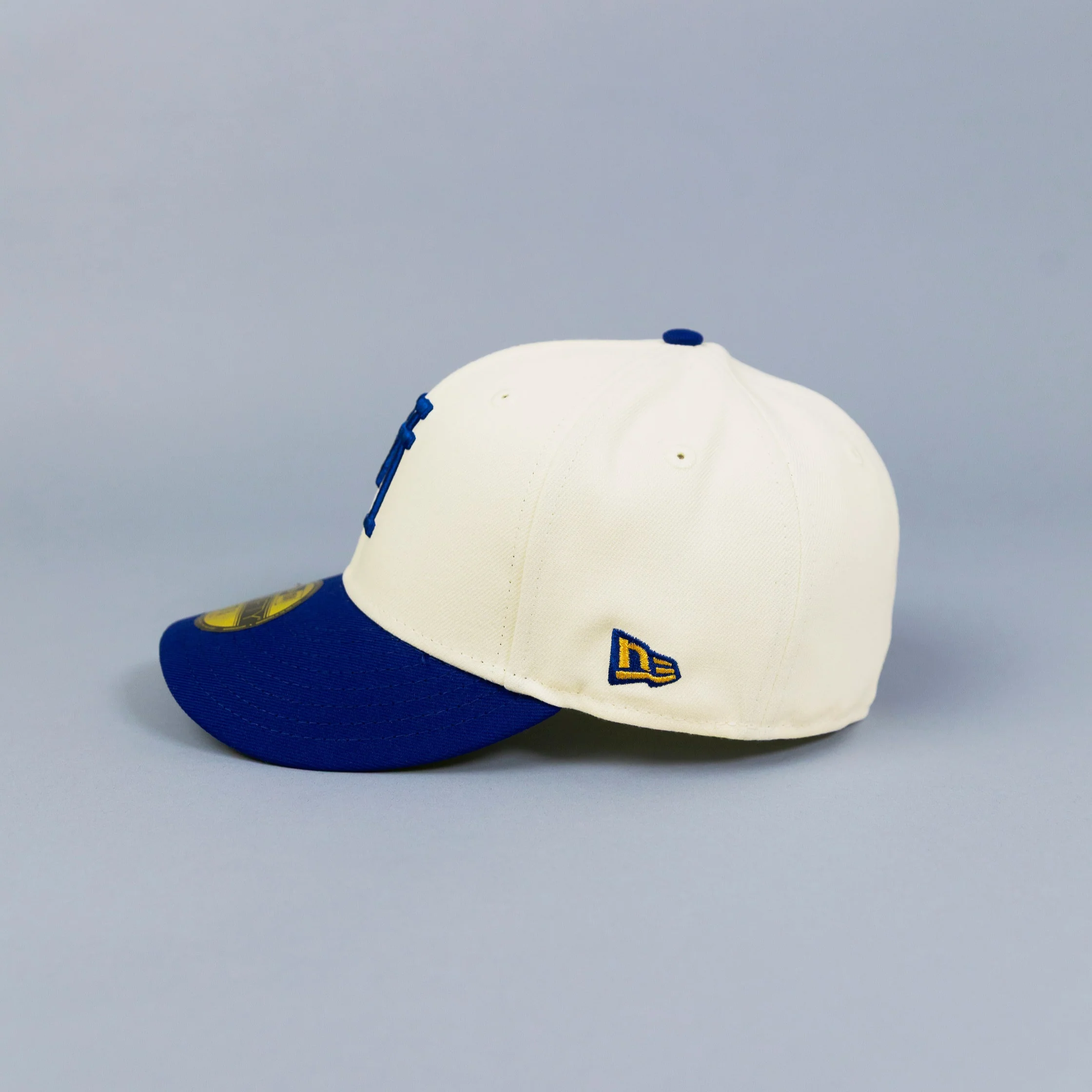 NEW ERA EXCLUSIVE 59FIFTY CHROME/ BLUE UPSIDE DOWN LOS ANGELES DODGERS W/ "JACKIE ROBINSON" SIDE PATCH